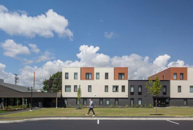 Portland Housing Authority (PHA)’s redevelopment of its Front Street Development will provide 113 units of affordable housing in an array of low-rise buildings along two blocks near the Back Cove neighborhood of Portland. This project is a multi-building, multi-phased demolition and redevelopment of an existing PHA project housing 50 families. The buildings and open spaces are arranged to better integrate the development into the fabric and flows of the neighborhood.